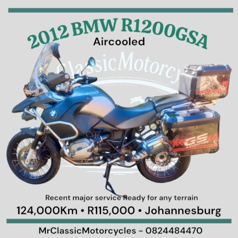12 August, 2025 Trevor White 0 Comments 0 categories Search for: Advanced Search Browse Ads Search Ads BMW R1200GSA Click to enlarge image. Contact Information Contact Trevor White Phone: +27 82 448 4470 Price: R 115,000.00 More Information 🇩🇪 R115,000 🇩🇪 Johannesburg 2012 BMW R1200GSA 124,000km. Just had a major service (R8,000). Last of the airhead models. Ready to take on any terrain. Please click on the WhatsApp icon to connect with TrevorWhite #470426137PJVV This Ad has been viewed 12 times. Related Posts Welcome to our New Site! We are excited to have our new website up and… Read More
