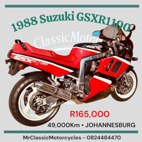 19 August, 2025 Trevor White 0 Comments 0 categories Search for: Advanced Search Browse Ads Search Ads Suzuki GSX Click to enlarge image. Contact Information Contact Trevor White Phone: +27 82 448 4470 Price: R 165,000.00 More Information 🇯🇵 R165,000 🇯🇵 Johannesburg 1988 Suzuki GSXR1100 49,000Kms Excellent condition. Please click on the WhatsApp icon to connect with TrevorWhite #030997186JB This Ad has been viewed 82 times. Related Posts Welcome to our New Site! We are excited to have our new website up and… Read More