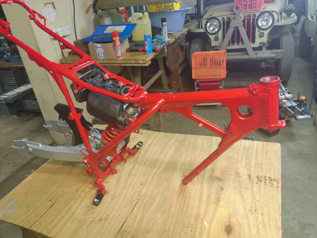 Powder coated frame & swing arm.