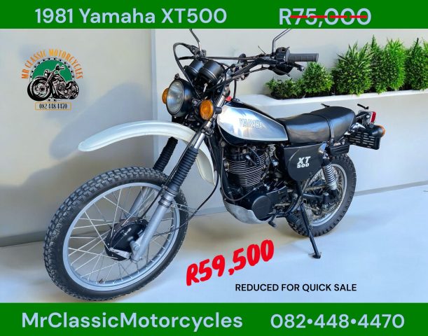 16 February, 2026 Trevor White 0 Comments 0 categories Search for: Advanced Search Browse Ads Search Ads Yamaha Click to enlarge image. Contact Information Contact Trevor White Phone: +27 82 448 4470 Price: R 57,500.00 More Information 🇯🇵 R57,500 🇯🇵 Knysna ❌ SORRY SOLD ❌ 1981 Yamaha XT500 Beautiful condition. Please click on the WhatsApp icon to connect with TrevorWhite #2162883382HL This Ad has been viewed 85 times. Related Posts Welcome to our New Site! We are excited to have our new website up and… Read More