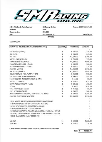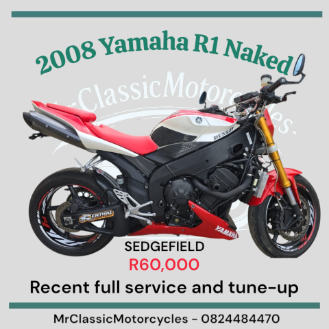 19 April, 2026 Trevor White 0 Comments 0 categories Search for: Advanced Search Browse Ads Search Ads Yamaha Click to enlarge image. Contact Information Contact Trevor White Phone: +27 82 448 4470 Price: R 60,000.00 More Information 🇯🇵 R60,000 🇯🇵 Sedgefield 2008 Yamaha R1 Naked Excellent condition. Recent service and tune-up. (See photos for invoice.) Please click on the WhatsApp icon to connect with TrevorWhite This Ad has been viewed 6 times. Related Posts Welcome to our New Site! We are excited to have our new website up and… Read More